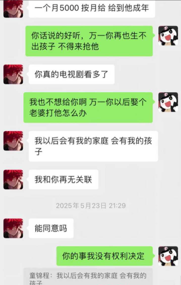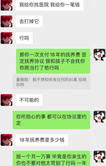 聊天记录曝光希望童锦程提供抚养支持