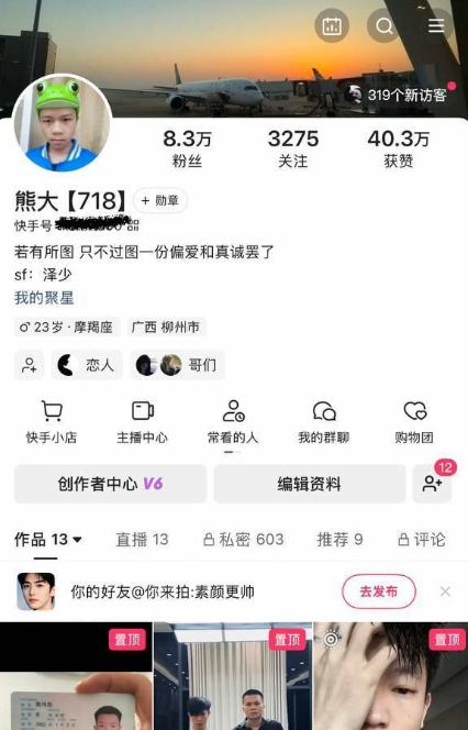快手知名大V泽少600万粉丝的亲传徒弟熊大718,本来只是个8万粉丝的小主播,却靠着师父的流量和资源,硬生生把一个在夜场陪酒的女朋友带上了岸,为了女友不惜砸重金、送礼物、买房买车,知道女友是陪酒女后,劝导她去直播、买衣服,甚至在公开场合秀恩爱只为让她离开陪酒行业,却惨遭被戴绿帽当了冤大头,实在是替兄弟感到可惜!